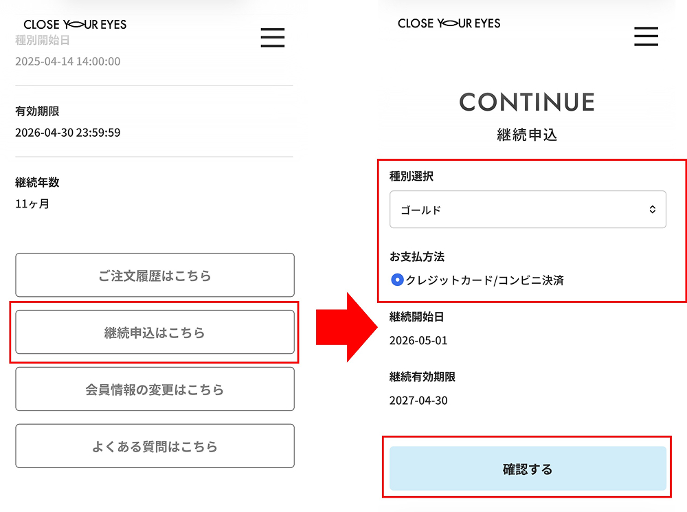 例:2026年4月30日が有効期限の会員様 →2026年3月1日よりボタンが表示